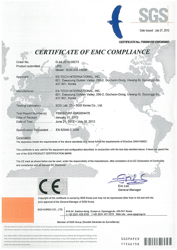 SGS Certificate Of EMC Compliance
