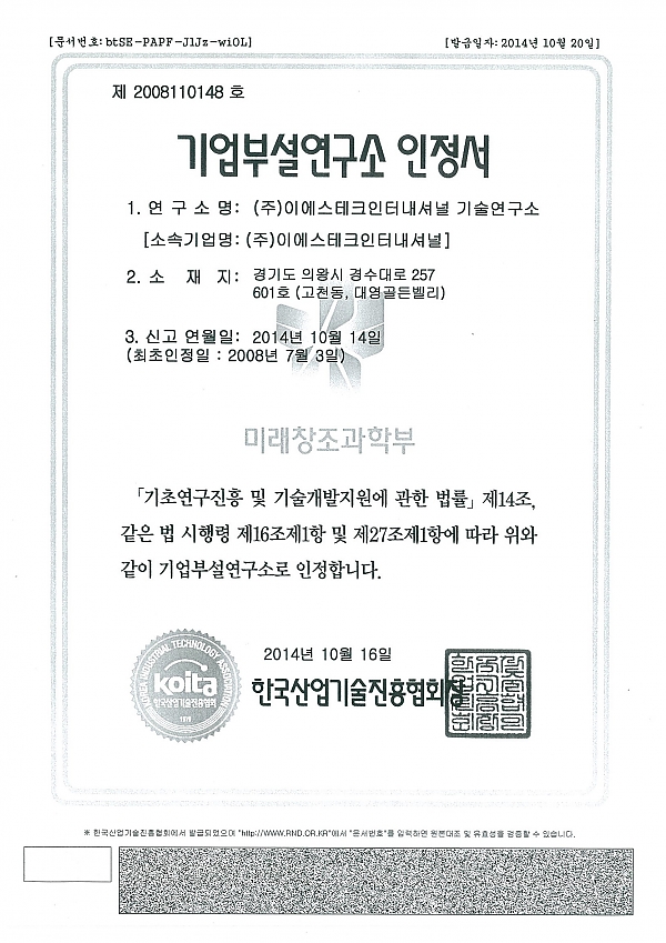 57, Saneop-ro 92beon-gil, Gwonseon-gu, Suwon-si Gyeonggi-do, Republic of Korea  TEL +82-70-4571-4700    FAX +82-70-4571-4799