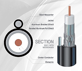 18 AWG copper clad steel center conductor, gas foamed polyethylene